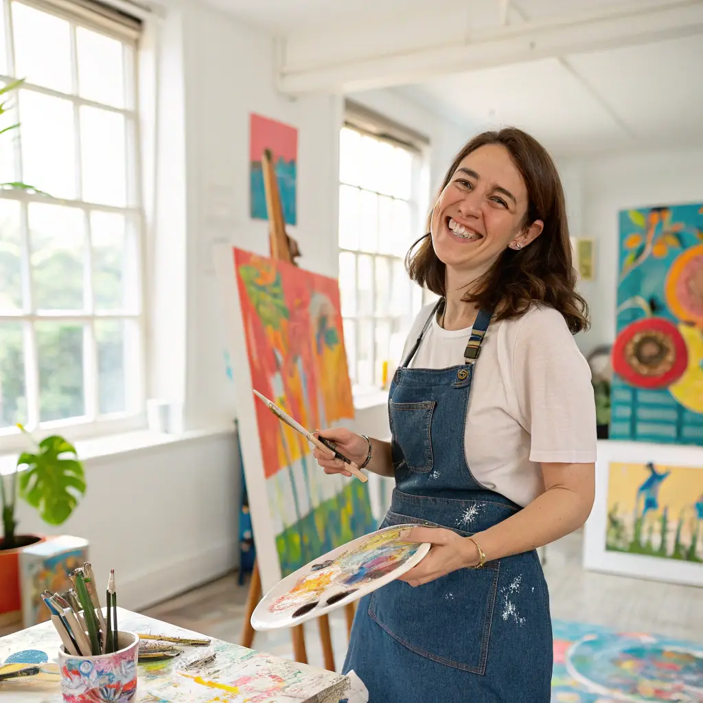 Amélie est une peintre passionnée, connue pour ses paysages vibrants et ses compositions abstraites.